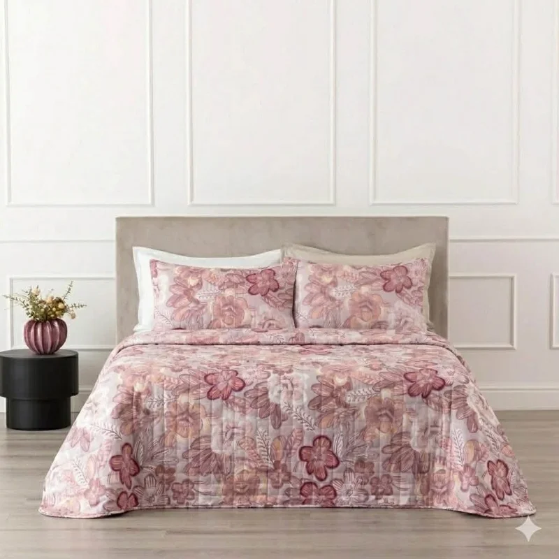 Il quilt Gledia in microfibra con stampa digitale è pensato per portare in camera un tocco decorativo delicato ma contemporaneo. Il fronte stampato presenta un motivo floreale ricco di sfumature, mentre il retro in tinta unita crea un piacevole equilibrio visivo. L’imbottitura in fibra anallergica da 120 gsm assicura una copertura leggera, ideale per la mezza stagione o per chi cerca un comfort avvolgente senza appesantire il letto.