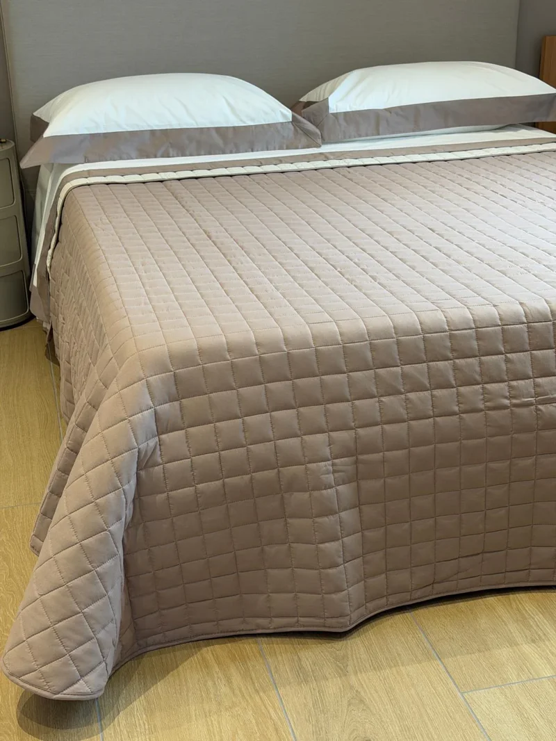 Trapuntatura continua a quadri di 5cm e chiusura ad angoli tondi