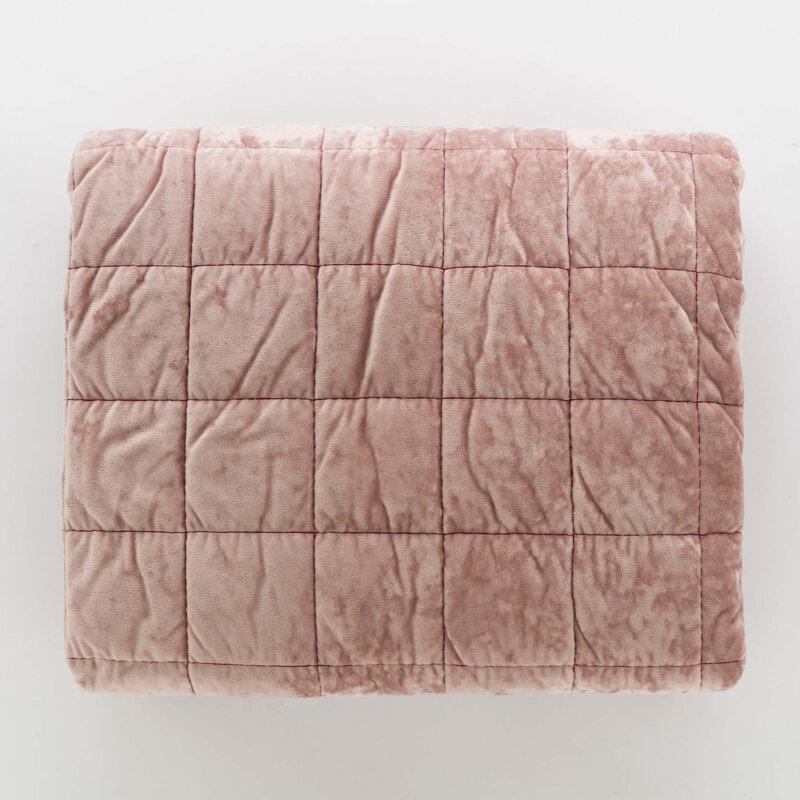 Il fronte è interamente realizzato in velluto, mentre il retro, in cotone 100%, garantisce comfort e traspirabilità a contatto con la pelle. L’imbottitura interna, in poliestere 120 GSM, è leggera e al tempo stesso avvolgente: perfetta per le mezze stagioni o per creare uno strato decorativo sopra la trapunta invernale.