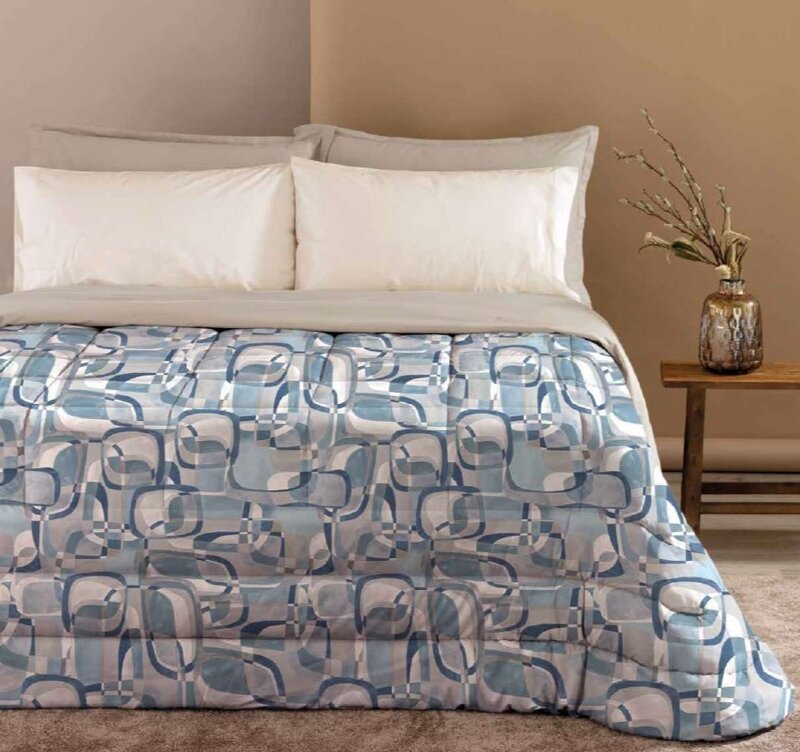 La trapunta ha un'imbottitura da 350 gr in fibra anallergica, trapuntatura a quadri e angoli arrotondati.
