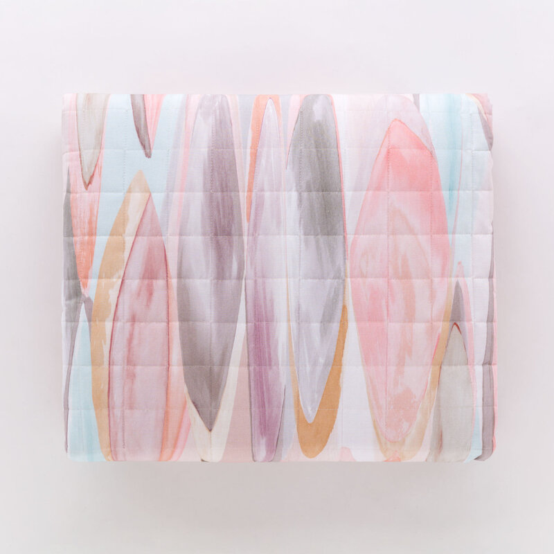 Il quilt di RIVIERA in percalle INTERLUDE è un’elegante gioco di sfumature ispirato ai colori della primavera. Realizzato con un fronte in percalle 100% cotone, questo quilt avvolge il letto con una stampa digitale raffinata, che crea un effetto fluido e armonioso.