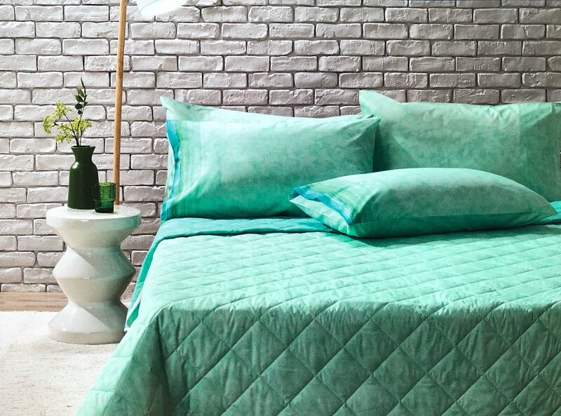 Copriletto trapuntato in tela di puro cotone americano double face con effetto tinta unita sfumato.