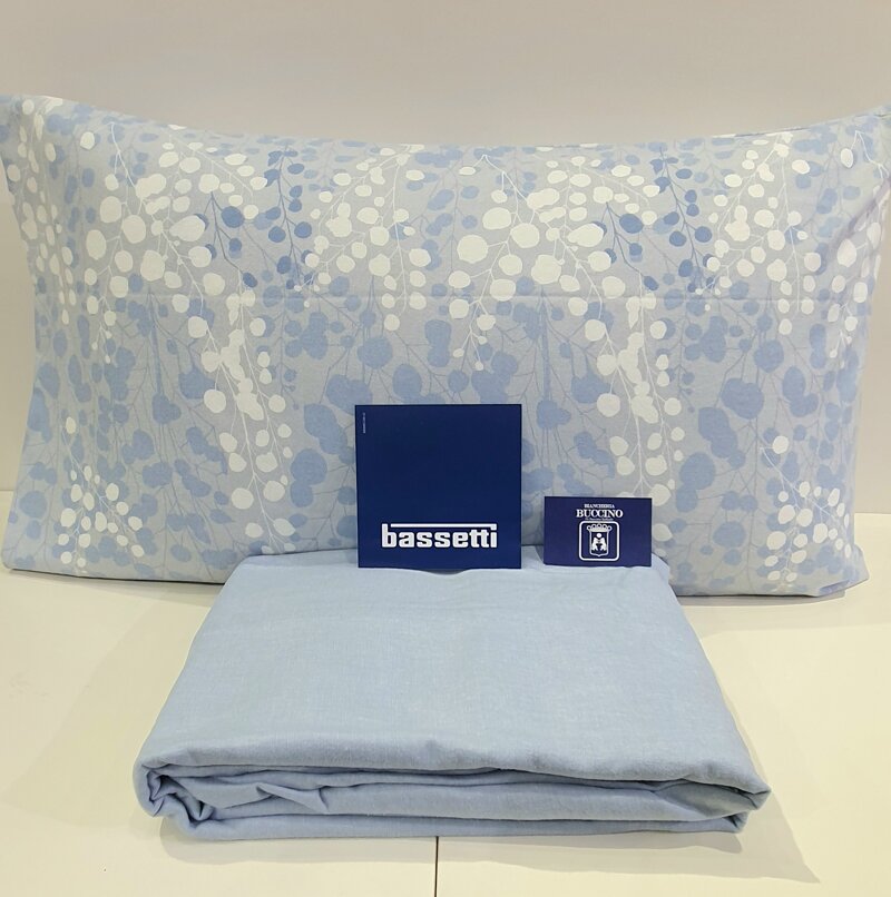 Le federe sono confezionate a sacco. Il lenzuolo con angoli è in flanella stampato con effetto falso unito.