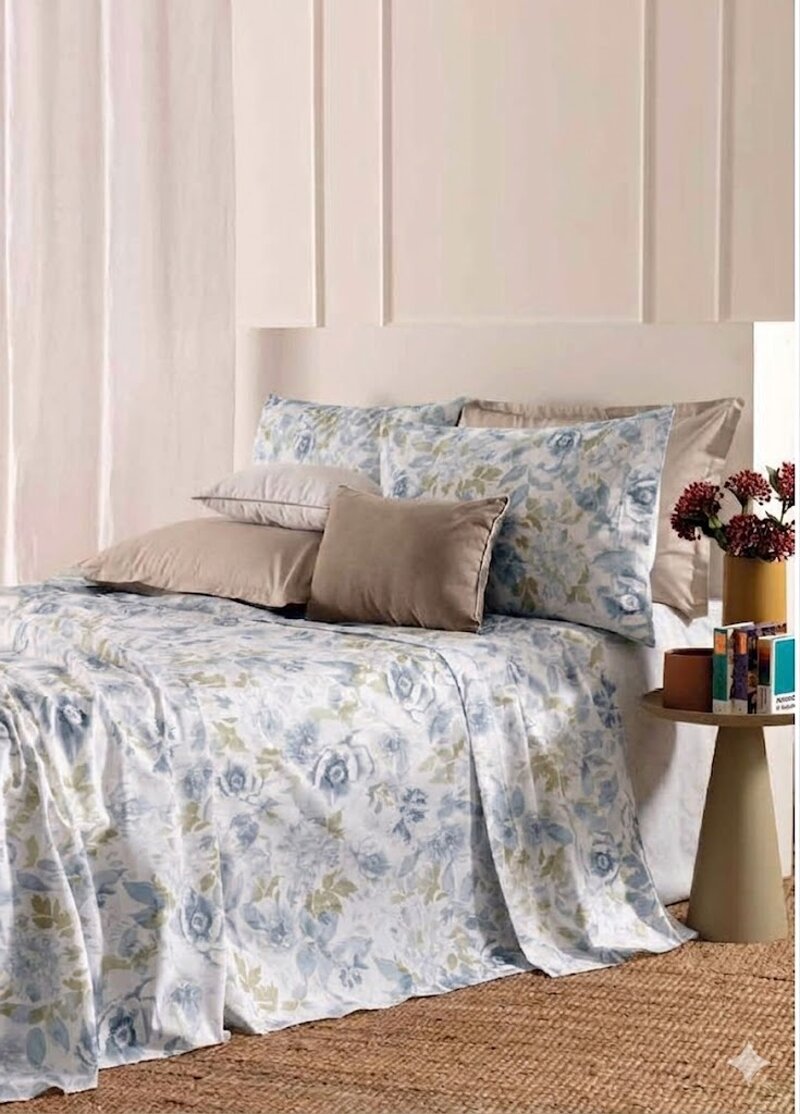 Completo Lenzuolo con Balza Copriletto e stampa piazzata, perfetto da utilizzare in estate senza copriletto.