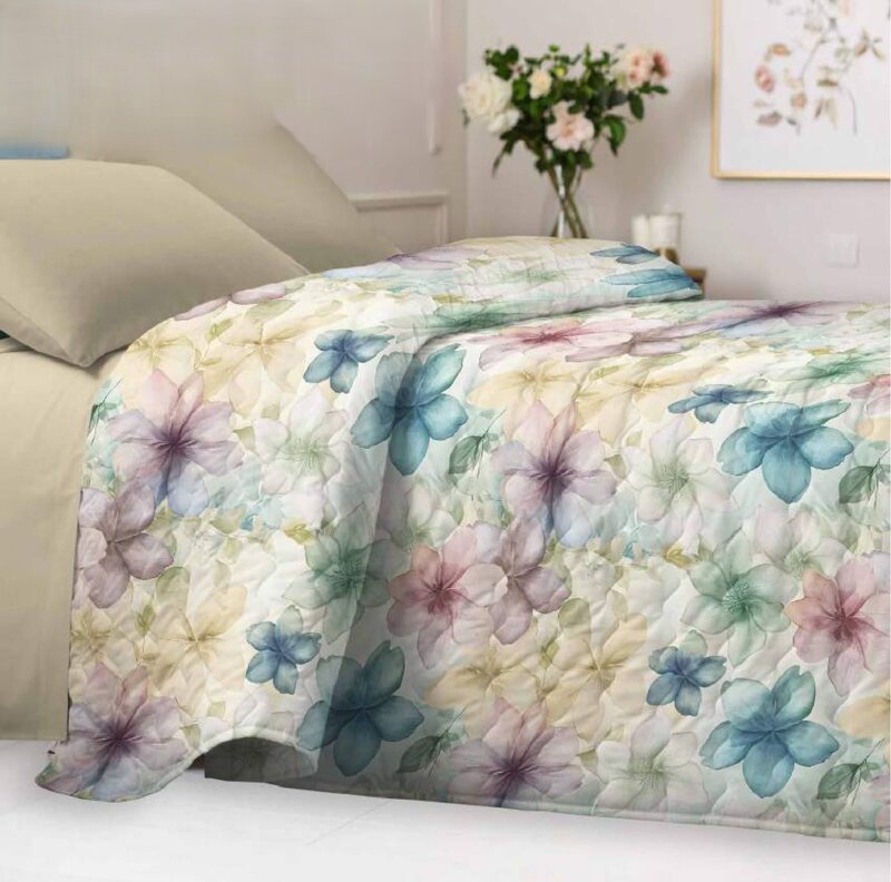 Trapuntino stampa digitale in morbida microfibra con retro in tinta unita.